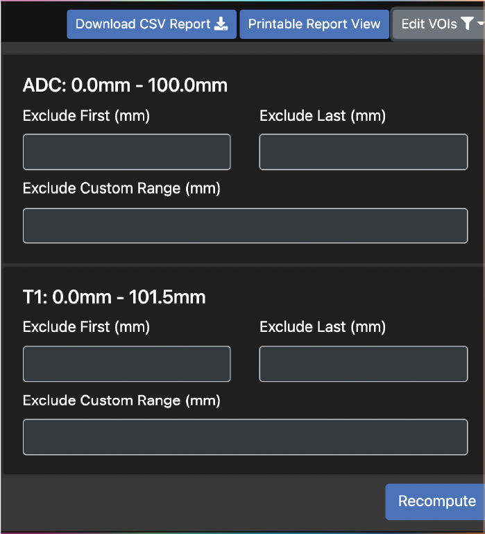 Click Edit VOIs to remove specified slices. The data will recompute without the excluded slices.